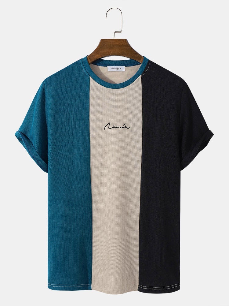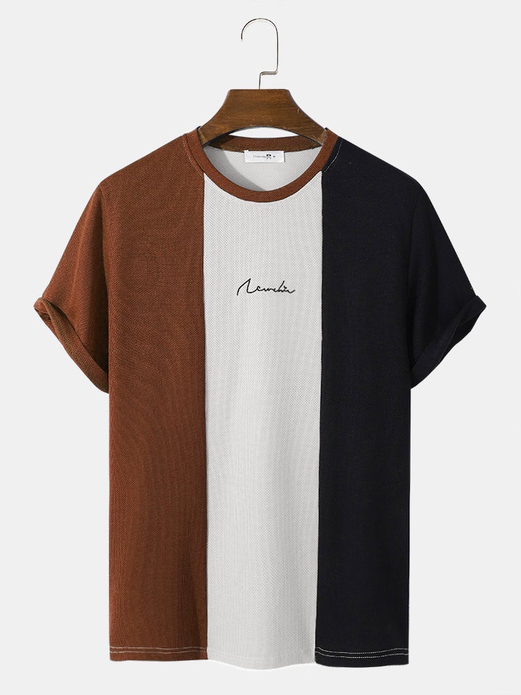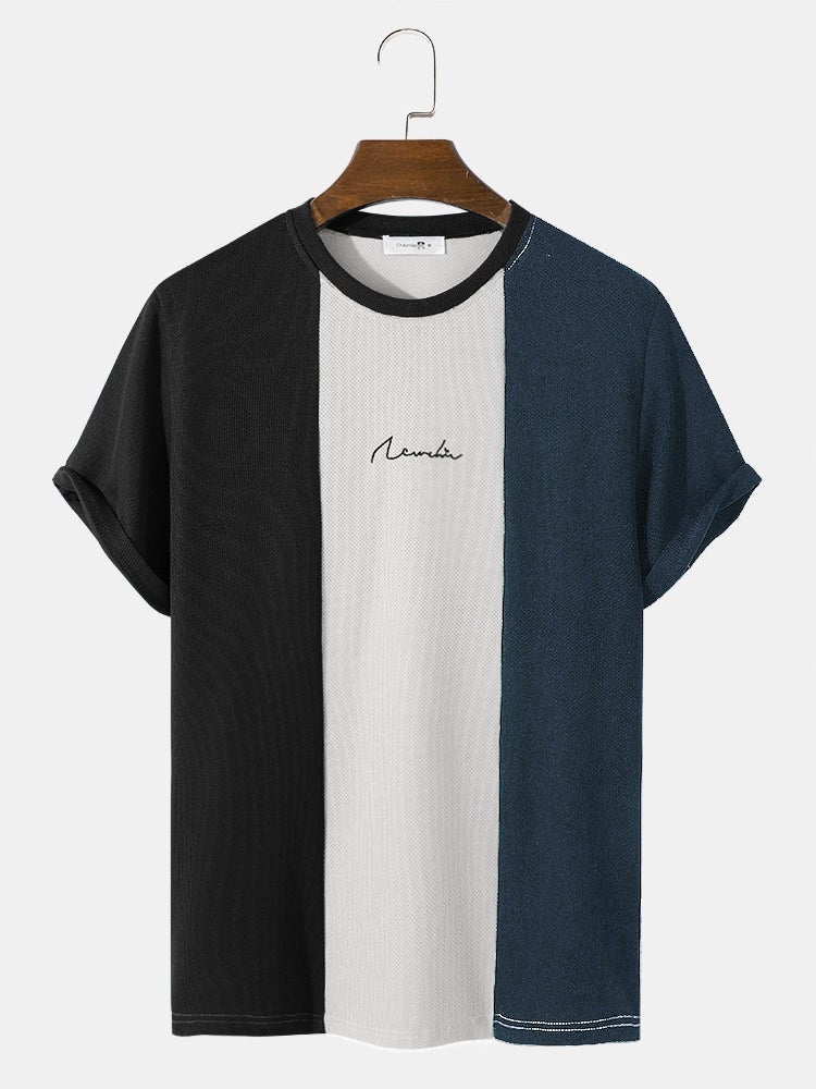 Men's Knitted Stitching Letter Embroidery T-Shirt | Crew Neck Short Sleeve Style