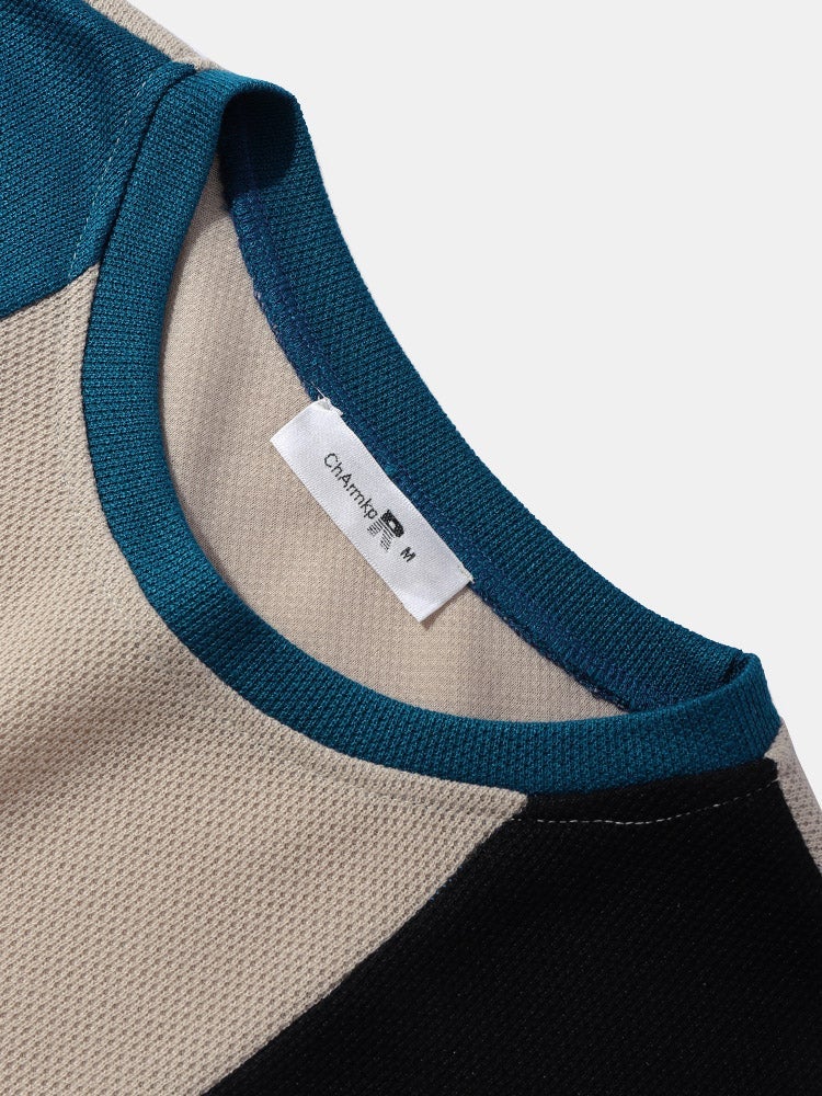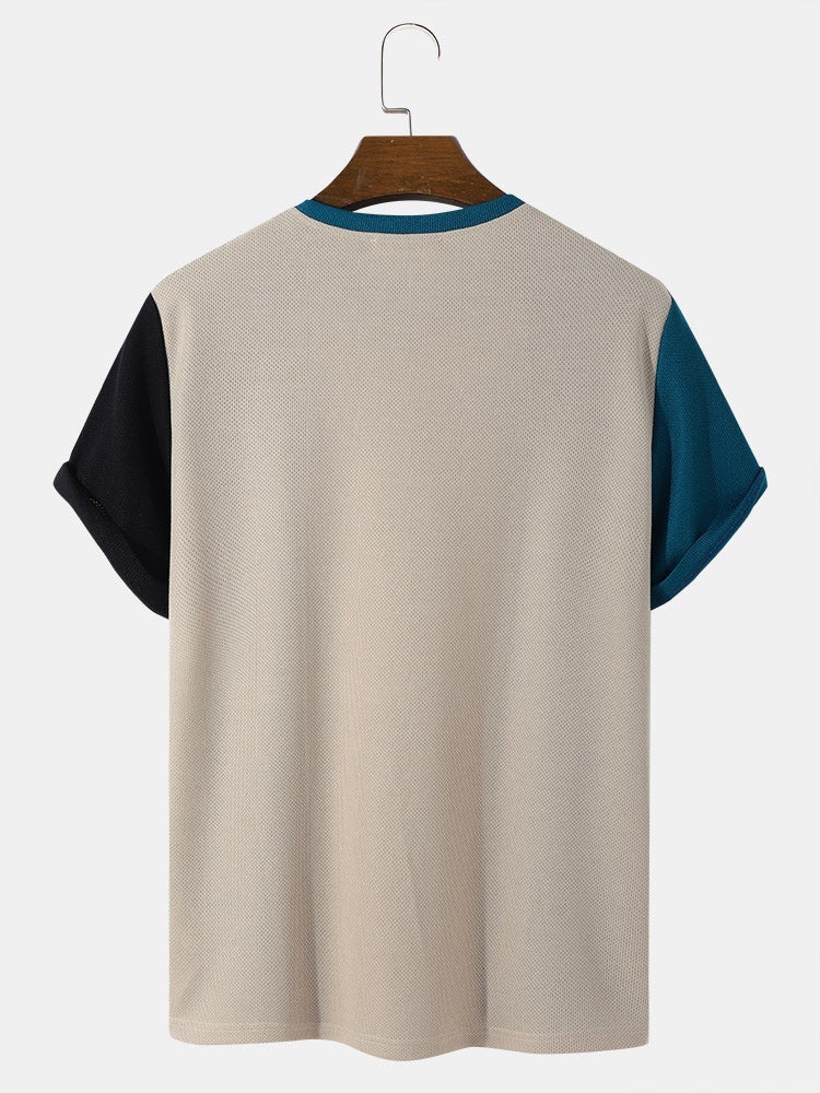 Men's Tricolor Patchwork T-Shirt | Crew Neck Short Sleeve Preppy Style