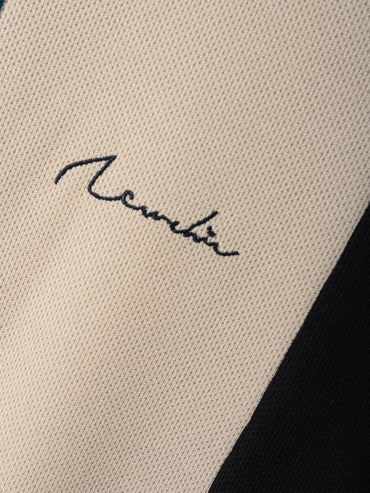Men's Stripe Spliced Embroidered T-Shirt | Loose Varsity Short Sleeve Style