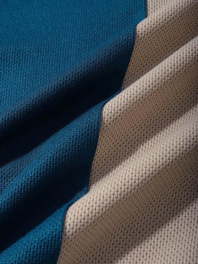 Men's Block Stripe Patchwork T-Shirt | Embroidered Knit Short Sleeve Preppy Style