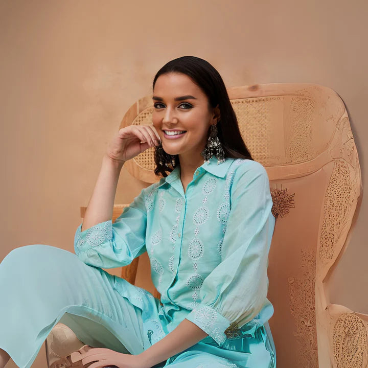 The casual cotton co-ord set is ideal for relaxed outings, featuring breathable fabrics and minimalist designs like stripes or solid colors, ensuring comfort and effortless style.
