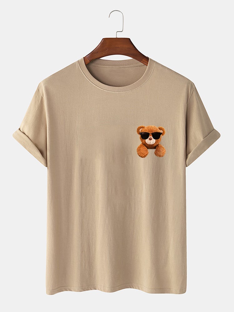 Step up your casual wear with the Men's 100% Cotton Cool Bear Print T-Shirt 🐻. This trendy tee features an adorable cool bear graphic that adds a playful touch to your outfit. Crafted from 100% soft cotton, this shirt is designed for comfort and style, making it a perfect choice for everyday wear or relaxed outings.