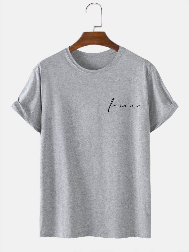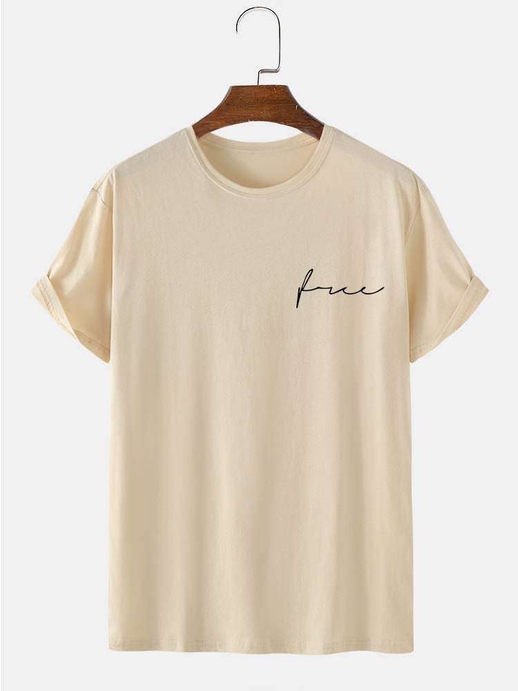 Men's 100% Cotton Plain Script Print T-Shirt | Casual Short Sleeve Style