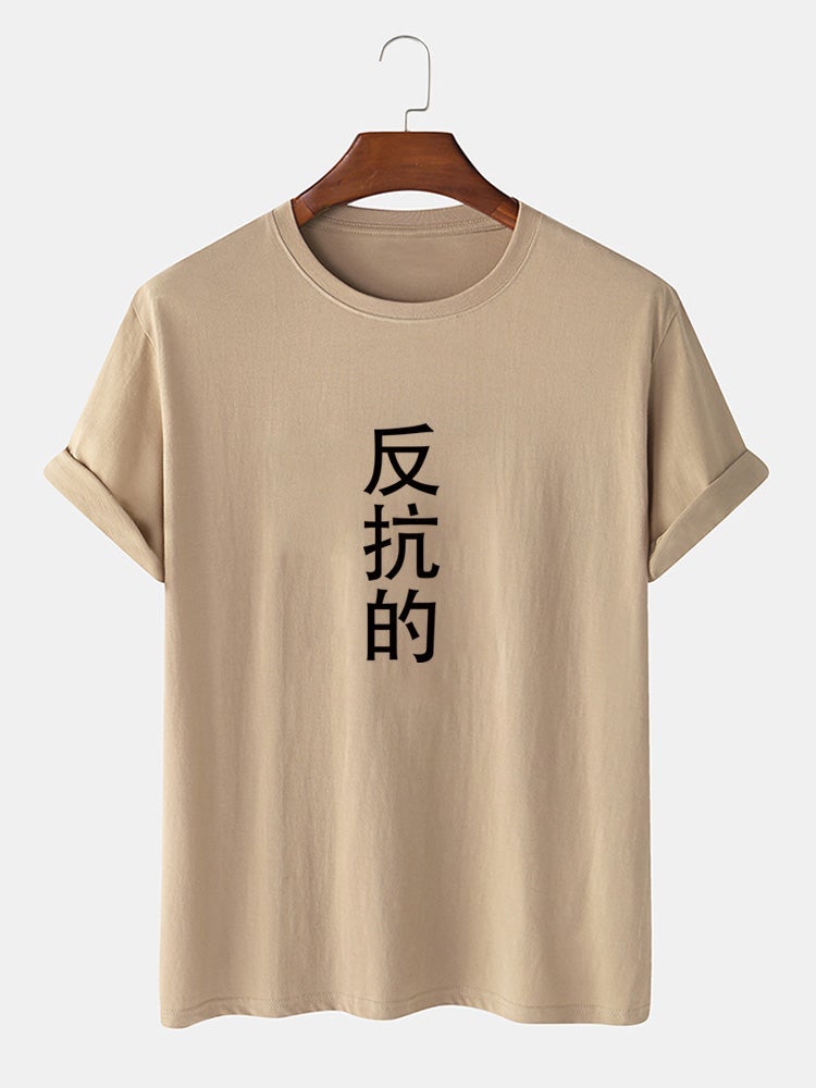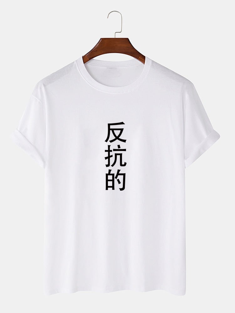 Men's Cotton Casual T-Shirt | Chinese Character Print Short Sleeve