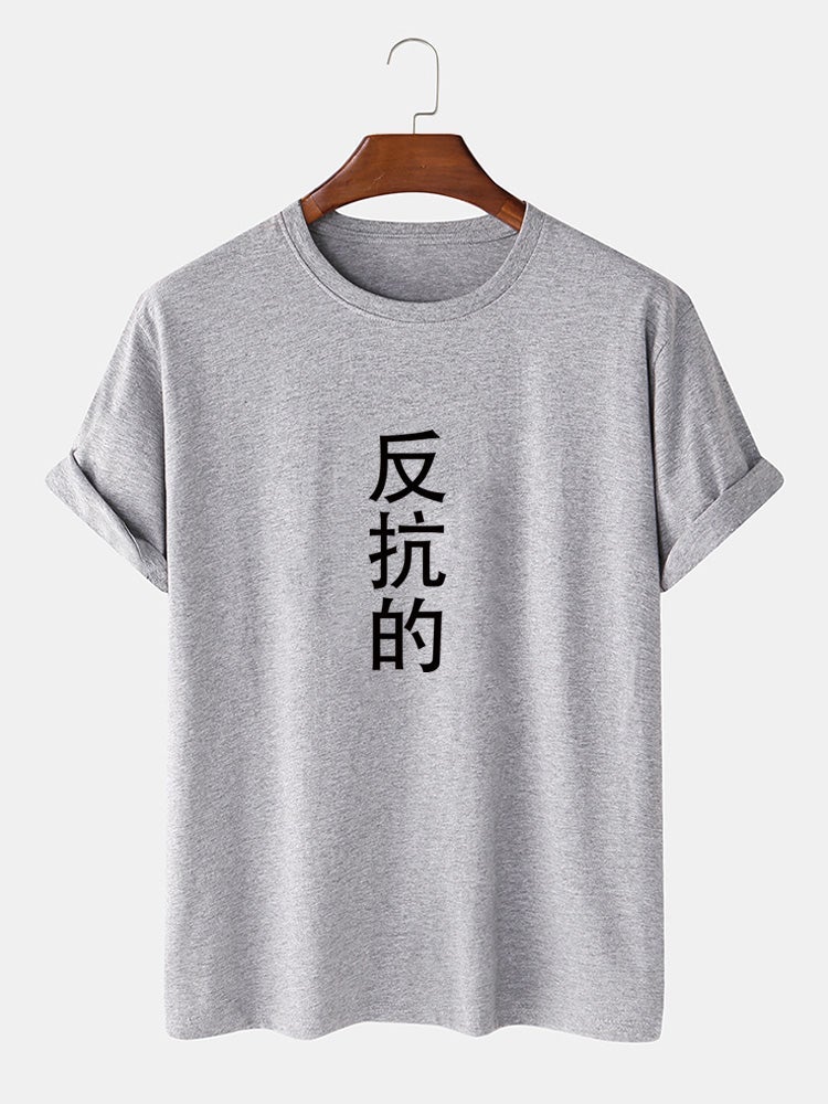 Make a statement with the Men's Cotton Casual T-Shirt featuring a striking Chinese character print 🏮. This stylish tee blends cultural flair with everyday comfort, making it a versatile addition to your casual wardrobe. Crafted from high-quality cotton, it offers breathability and a soft feel, perfect for various occasions, from casual outings to relaxed days at home.