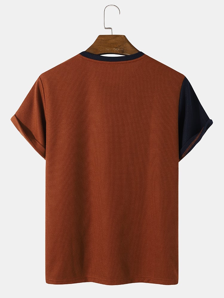 Men's Knit Irregular Color Block T-Shirt | Preppy Stitching Short Sleeve
