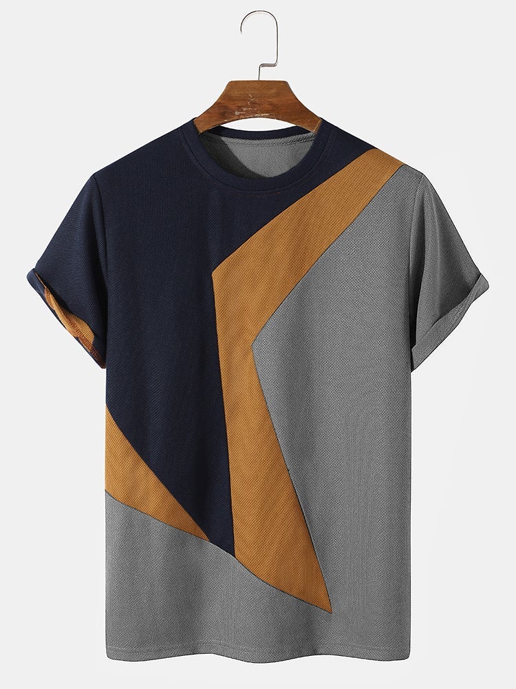 Elevate your casual style with the Men's Knit Irregular Color Block T-Shirt, blending comfort and bold design in one preppy package! 🧶