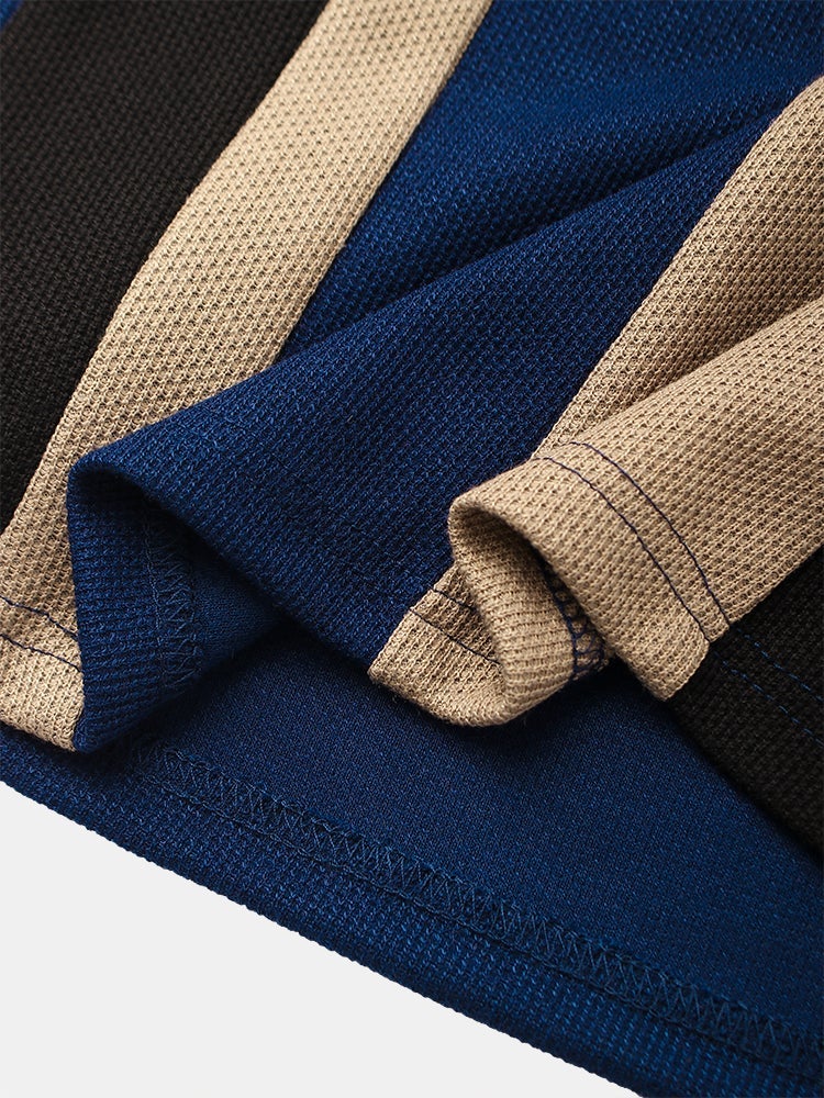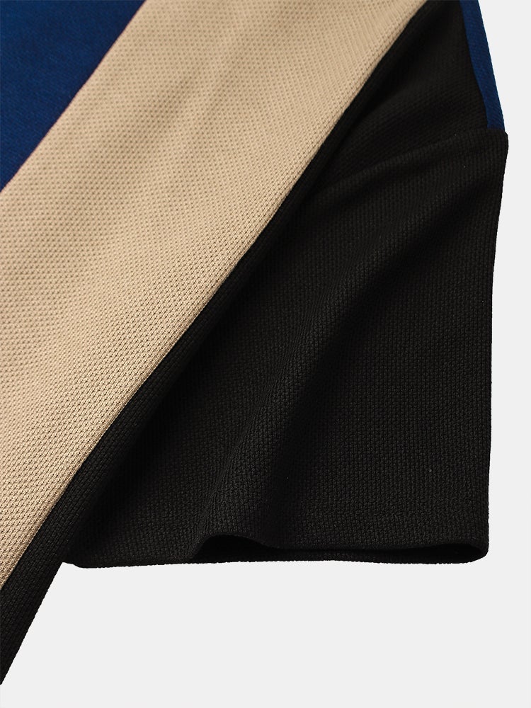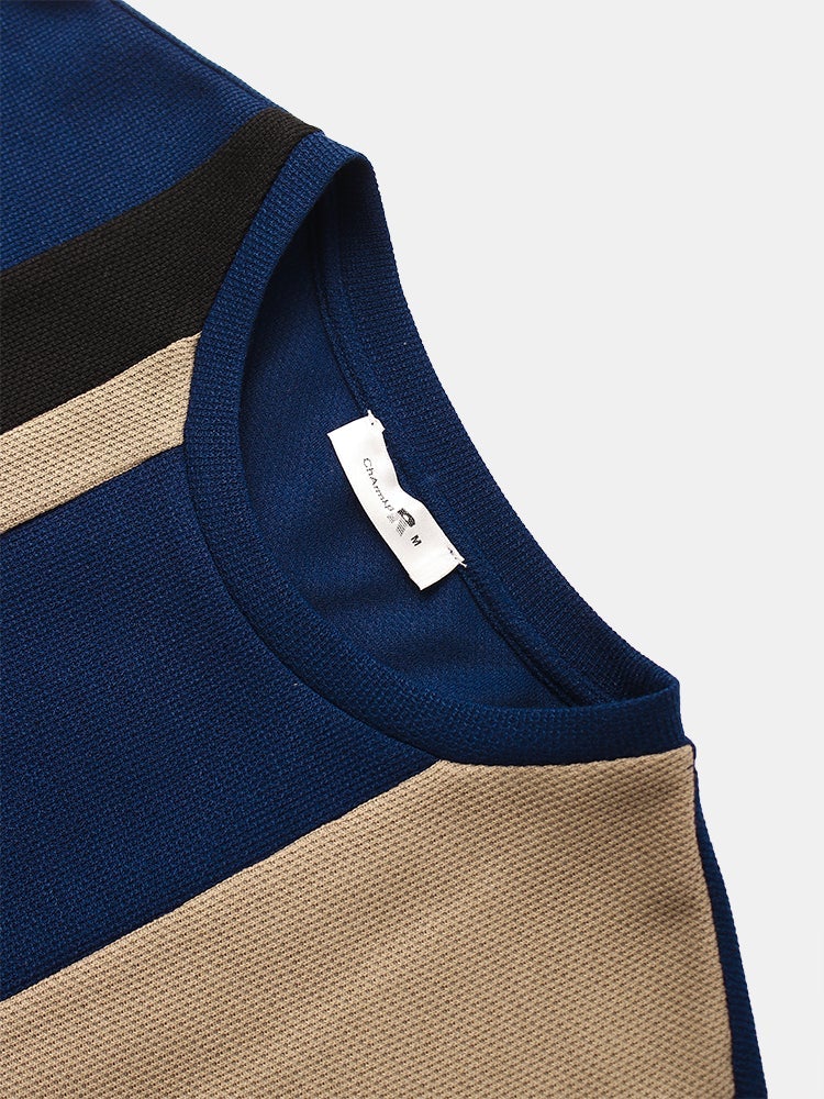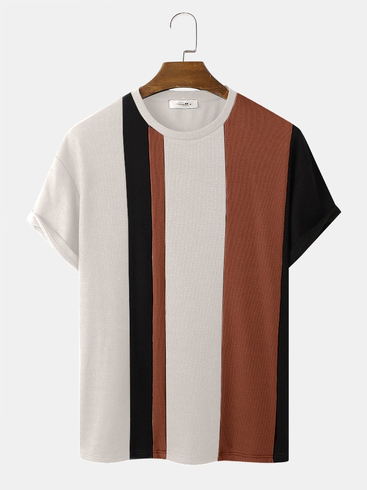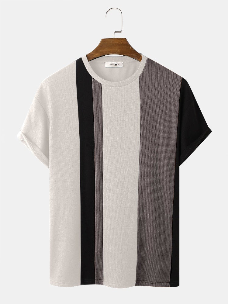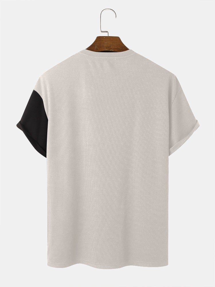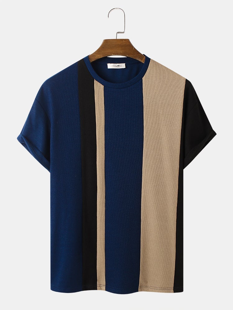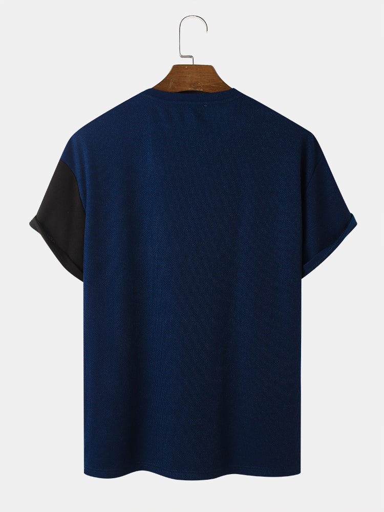 Men's Knitted Contrasting Color T-Shirt | Short Sleeve Stitching Style