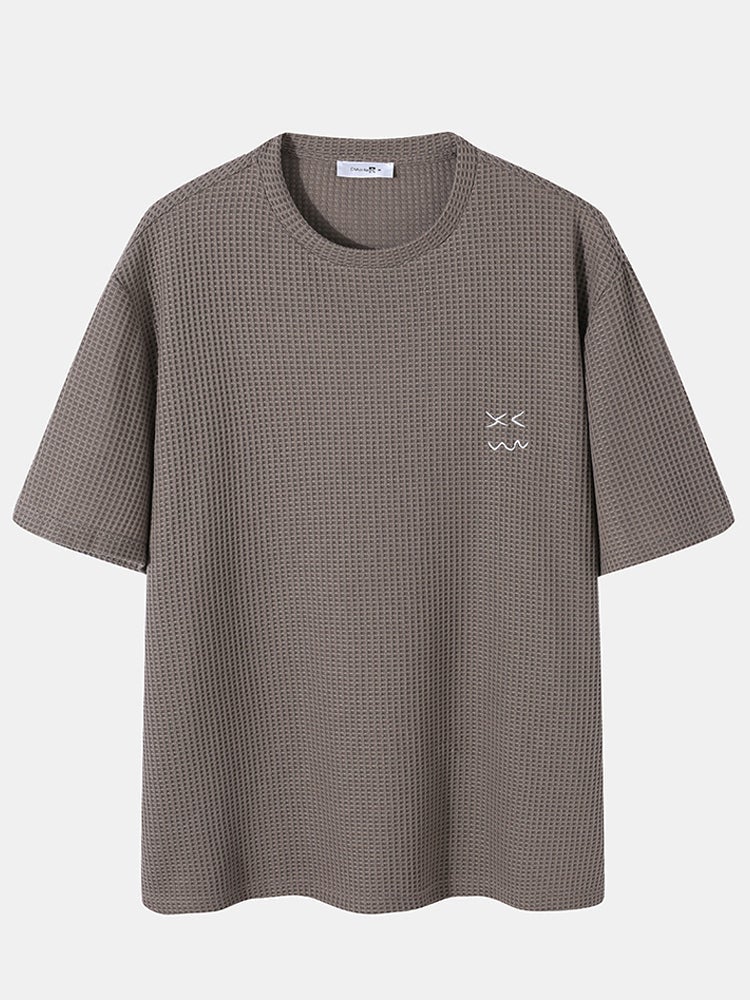 Men's Knitted T-Shirt | Casual Embroidered Pattern Short Sleeve
