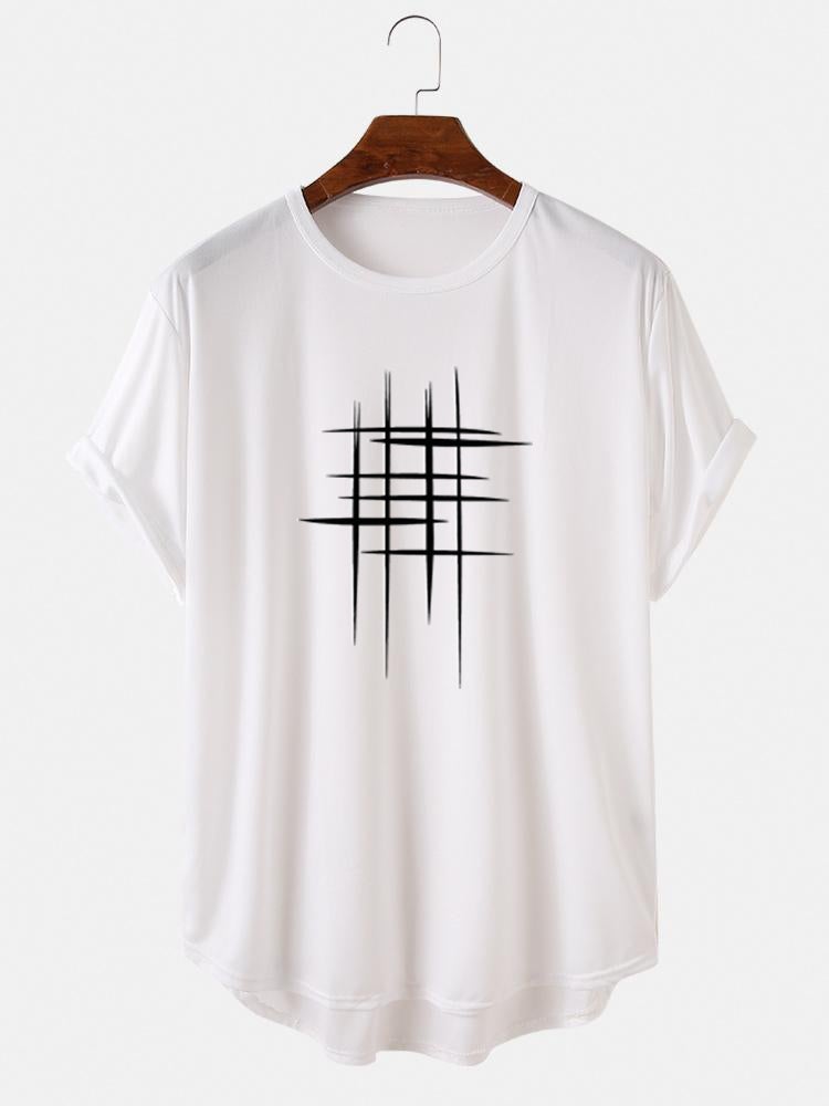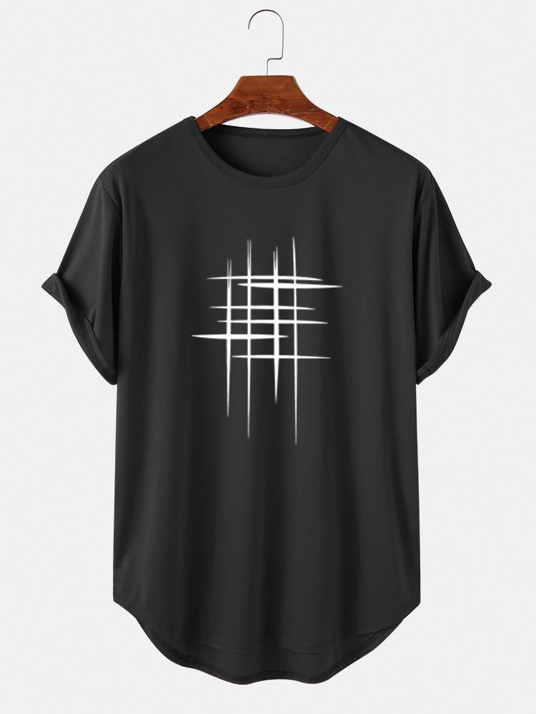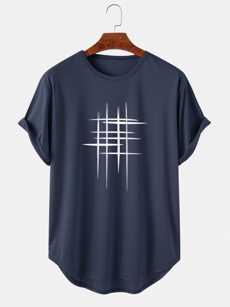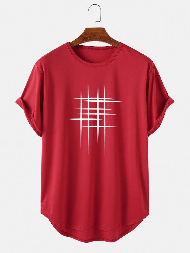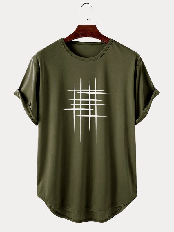 Stay stylish and comfortable during your workouts with the Men's Line Graphic High Low Curved Hem T-Shirt—your new go-to sports tee! 🏋️♂️