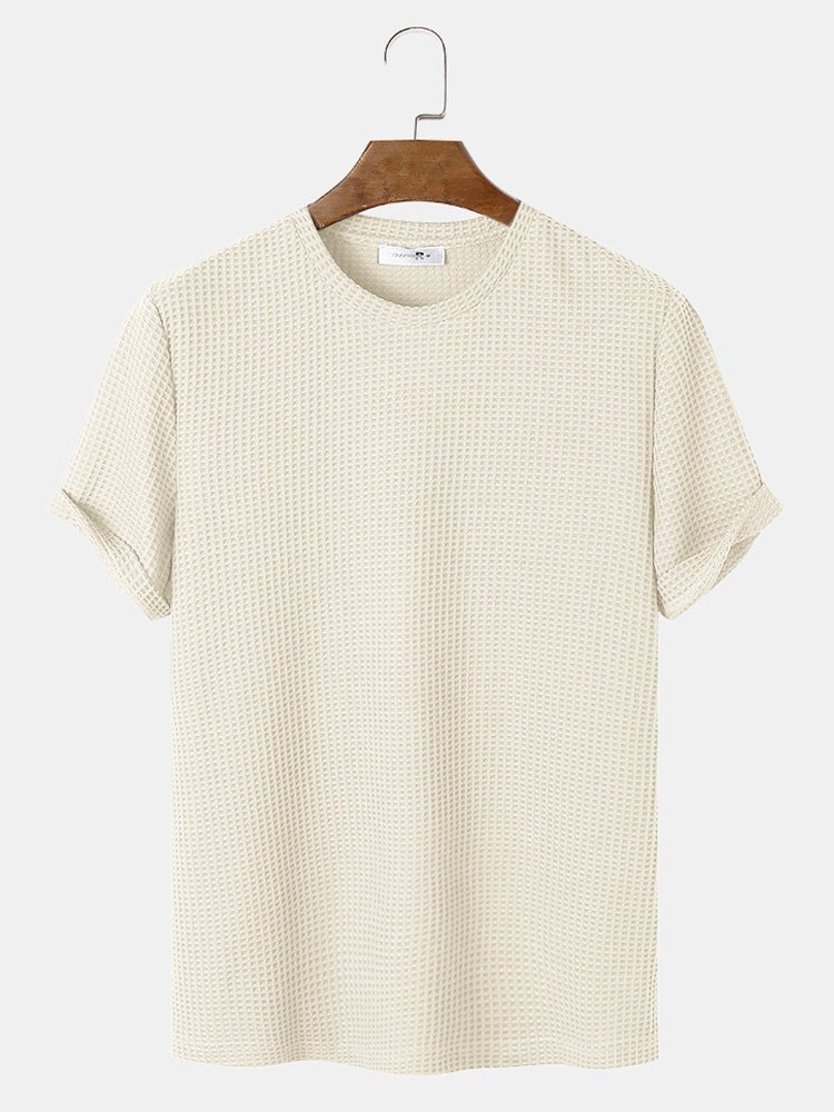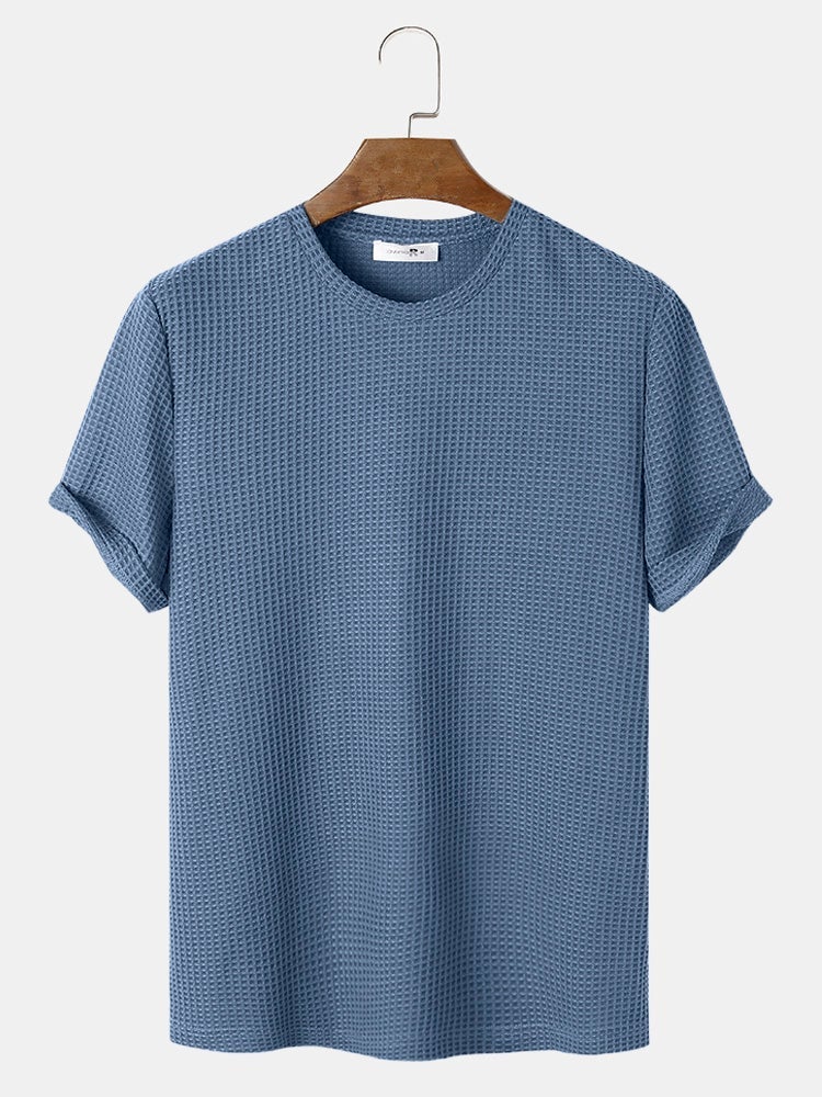 Experience the perfect combination of comfort and style with the Men's Plain Texture Knitted Waffle T-Shirt—your go-to choice for effortless everyday wear! 🌟