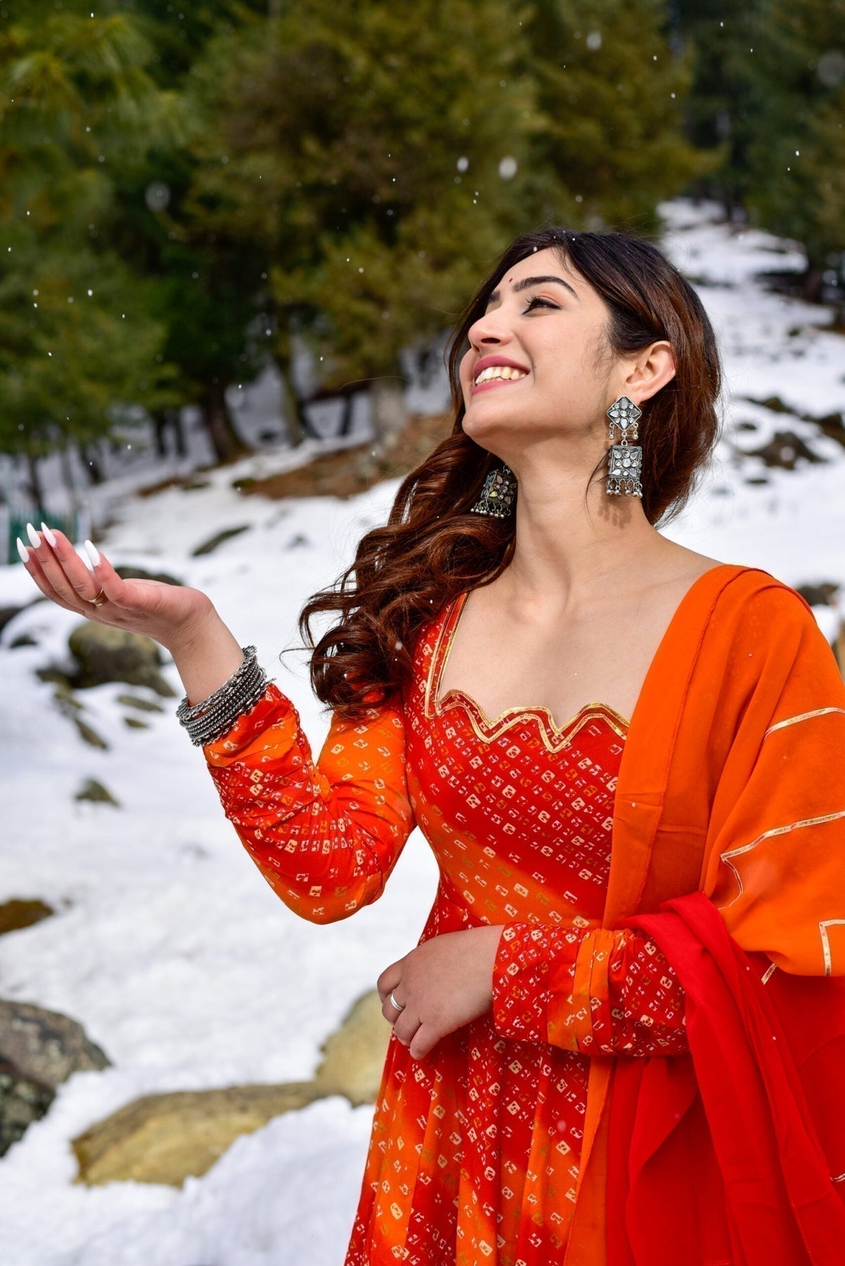 • Design: Traditional block prints with modern flared Anarkali cut