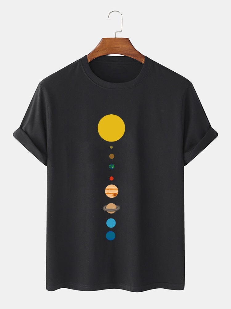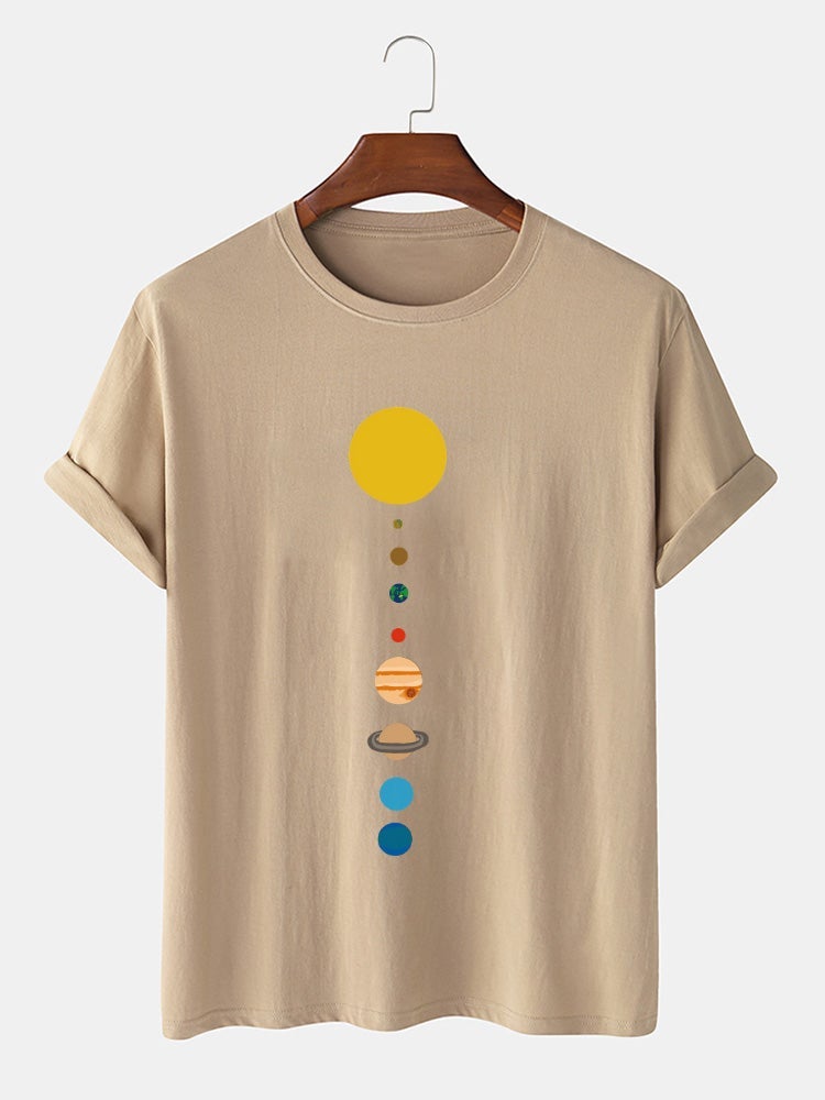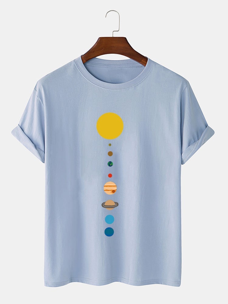 Men's 100% Cotton Cartoon Planet Print T-Shirt | Solid Thin Loose O-Neck Design