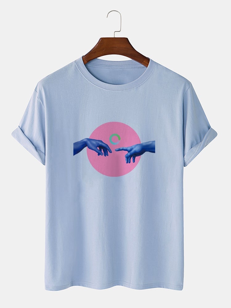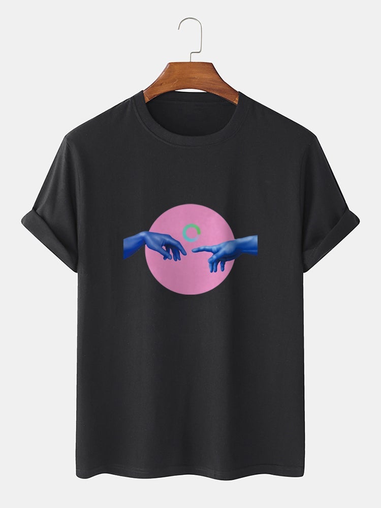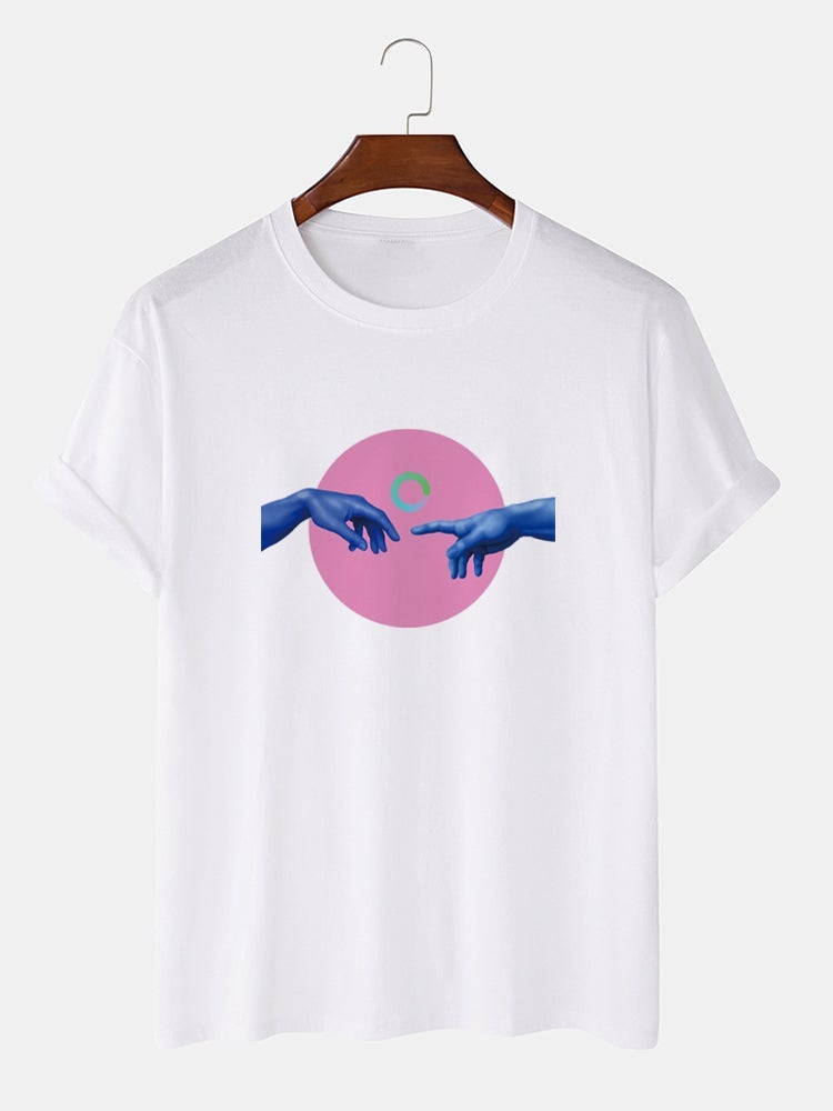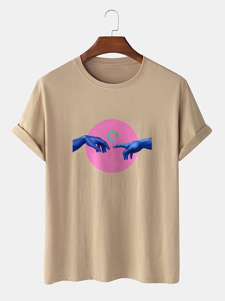 Step up your casual wardrobe with this Men's 100% Cotton Hand Circle Print T-Shirt. Featuring a unique hand-drawn circle graphic, this tee exudes a laid-back yet preppy vibe. Made from breathable 100% cotton, this short-sleeve T-shirt is perfect for everyday wear, combining comfort with a touch of artistic flair.