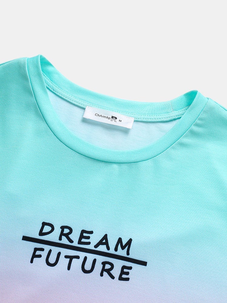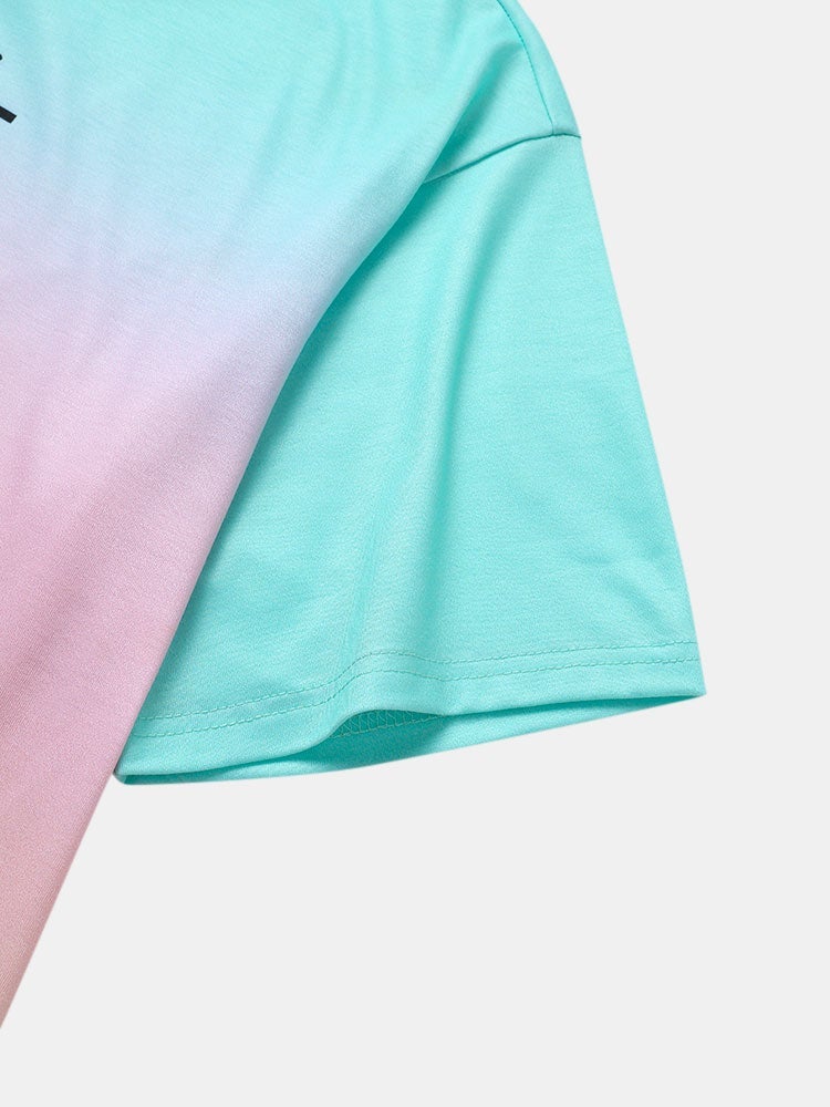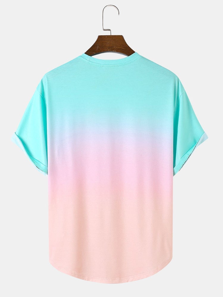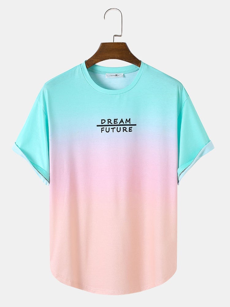 Step up your casual wardrobe with the Men's Colorful Ombre Letter Print T-Shirt 🌈. This unique tee features a striking ombre effect with bold letter prints, making it a standout piece for those who love vibrant and stylish designs. The loose fit and curved hem provide a relaxed, modern silhouette, perfect for casual outings or a laid-back day. Made from soft, breathable fabric, this shirt ensures comfort and style in equal measure.