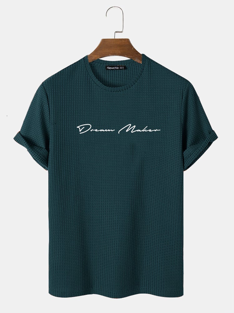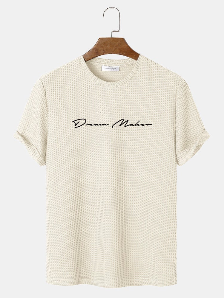 Men's Knit Textured Script Embroidery T-Shirt | Casual Short Sleeve Style