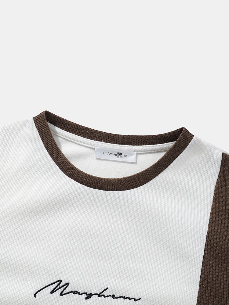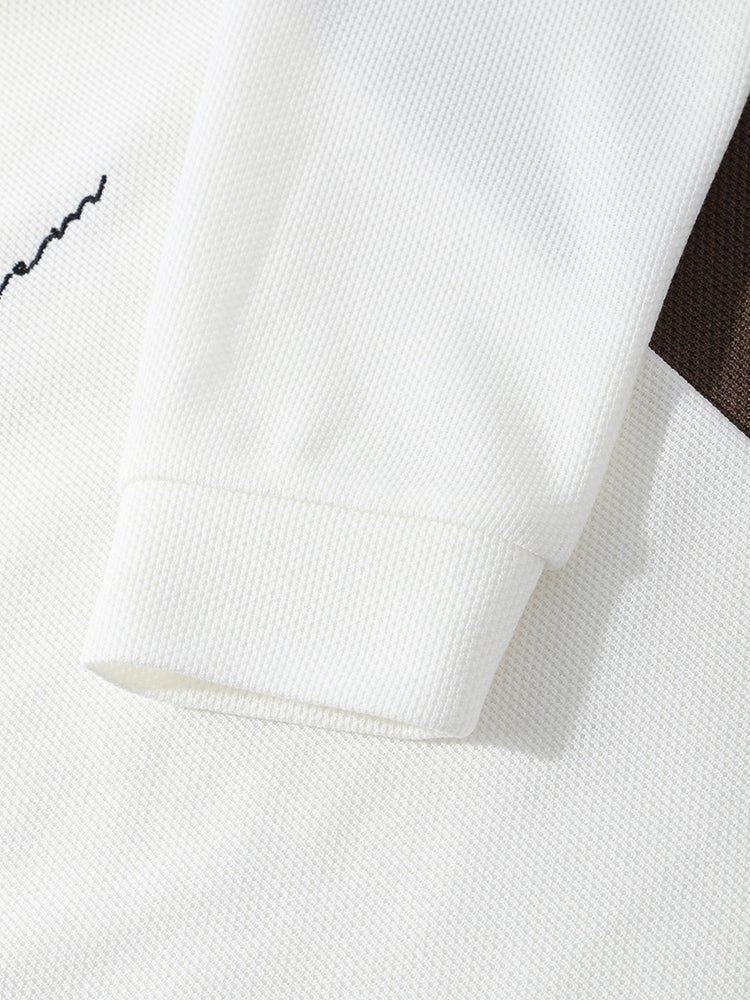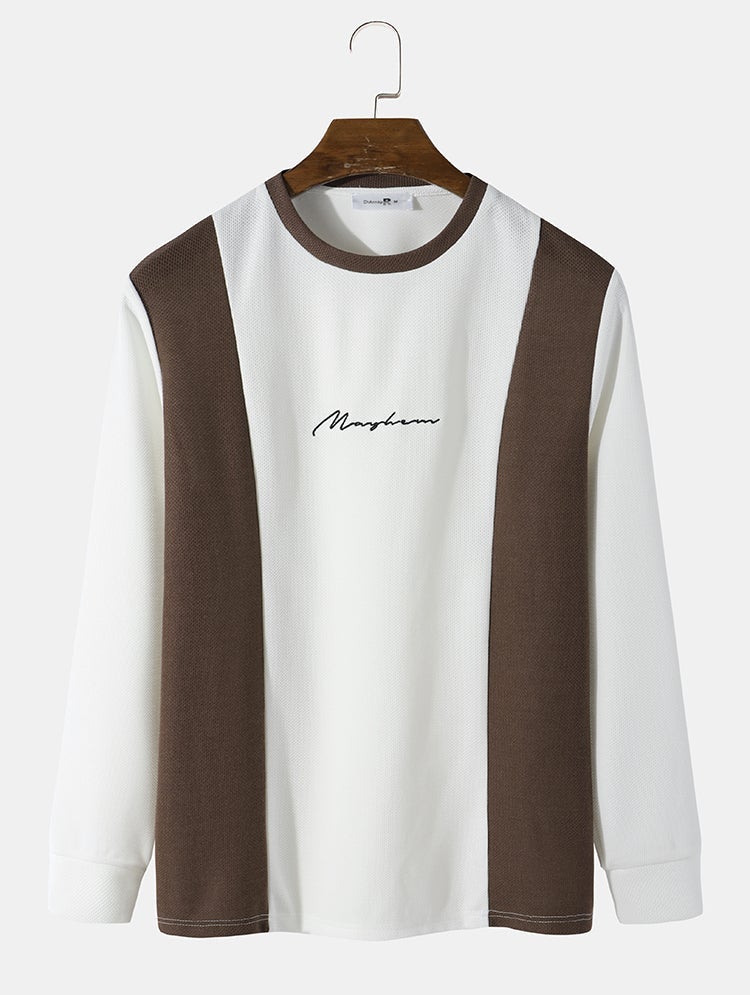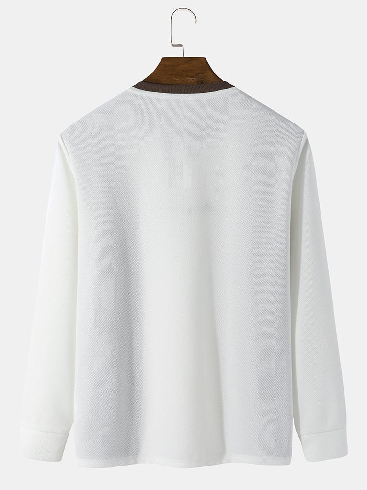 Add a touch of sophistication to your wardrobe with the Men's Two-Tone Knitted T-Shirt. This unique piece features a contrasting two-tone design that stands out, while the embroidered character detailing adds a playful yet refined touch. Made from a comfortable knit fabric, this long sleeve T-shirt is perfect for layering or wearing on its own during cooler weather.