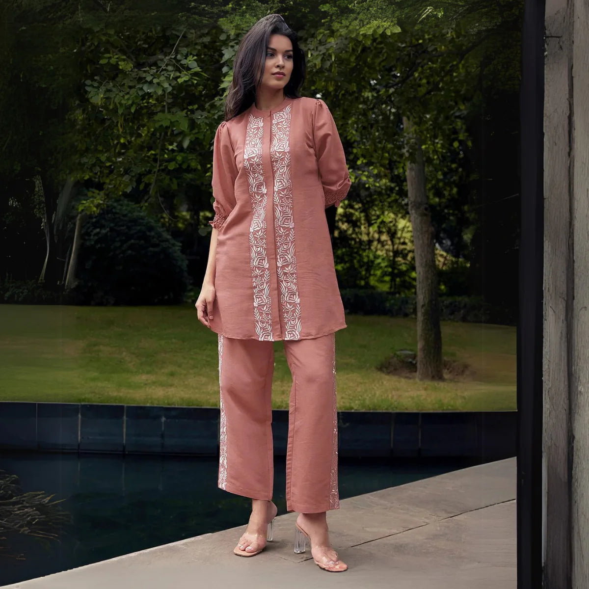 The casual cotton co-ord set is ideal for relaxed outings, featuring breathable fabrics and minimalist designs like stripes or solid colors, ensuring comfort and effortless style.