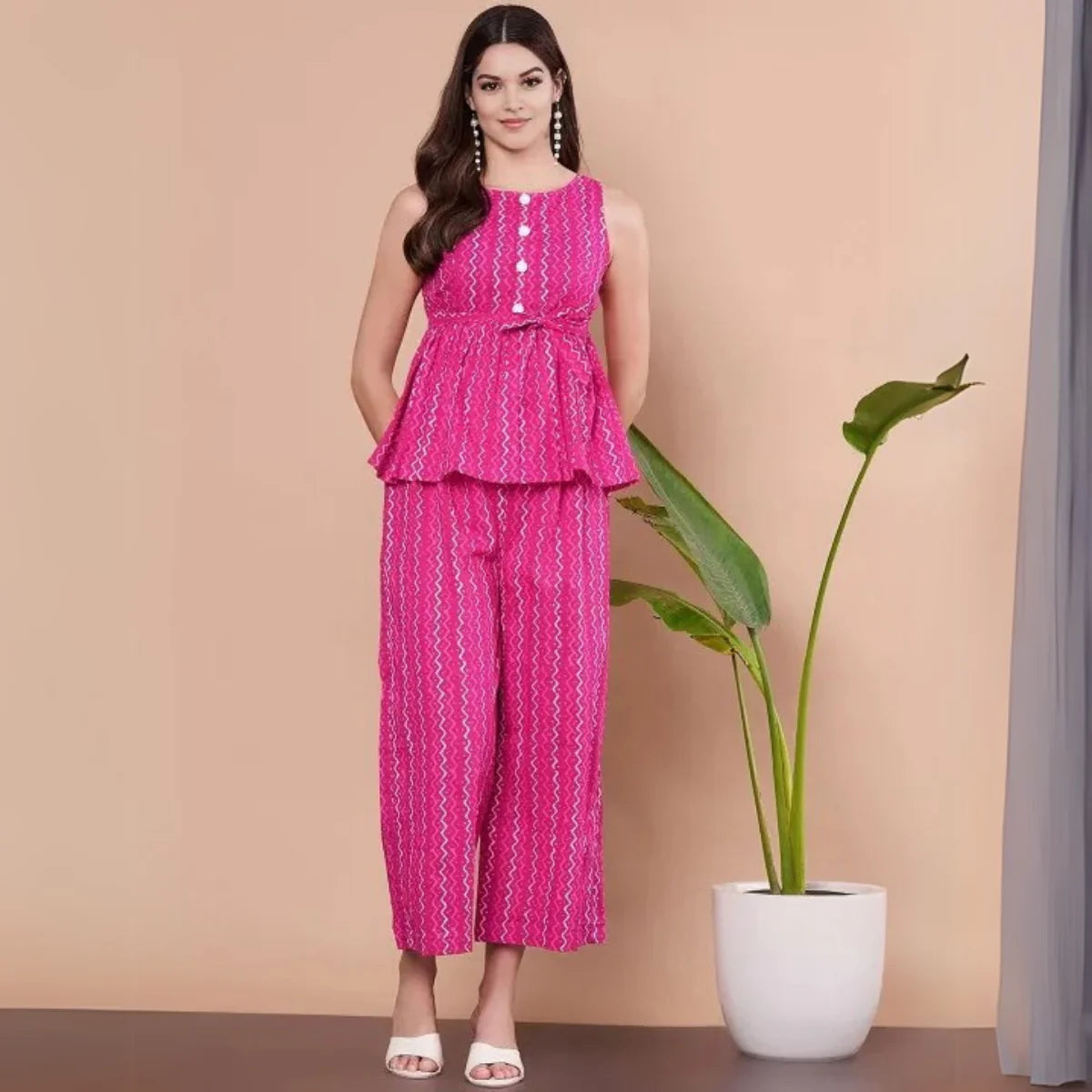 The casual cotton co-ord set is ideal for relaxed outings, featuring breathable fabrics and minimalist designs like stripes or solid colors, ensuring comfort and effortless style.