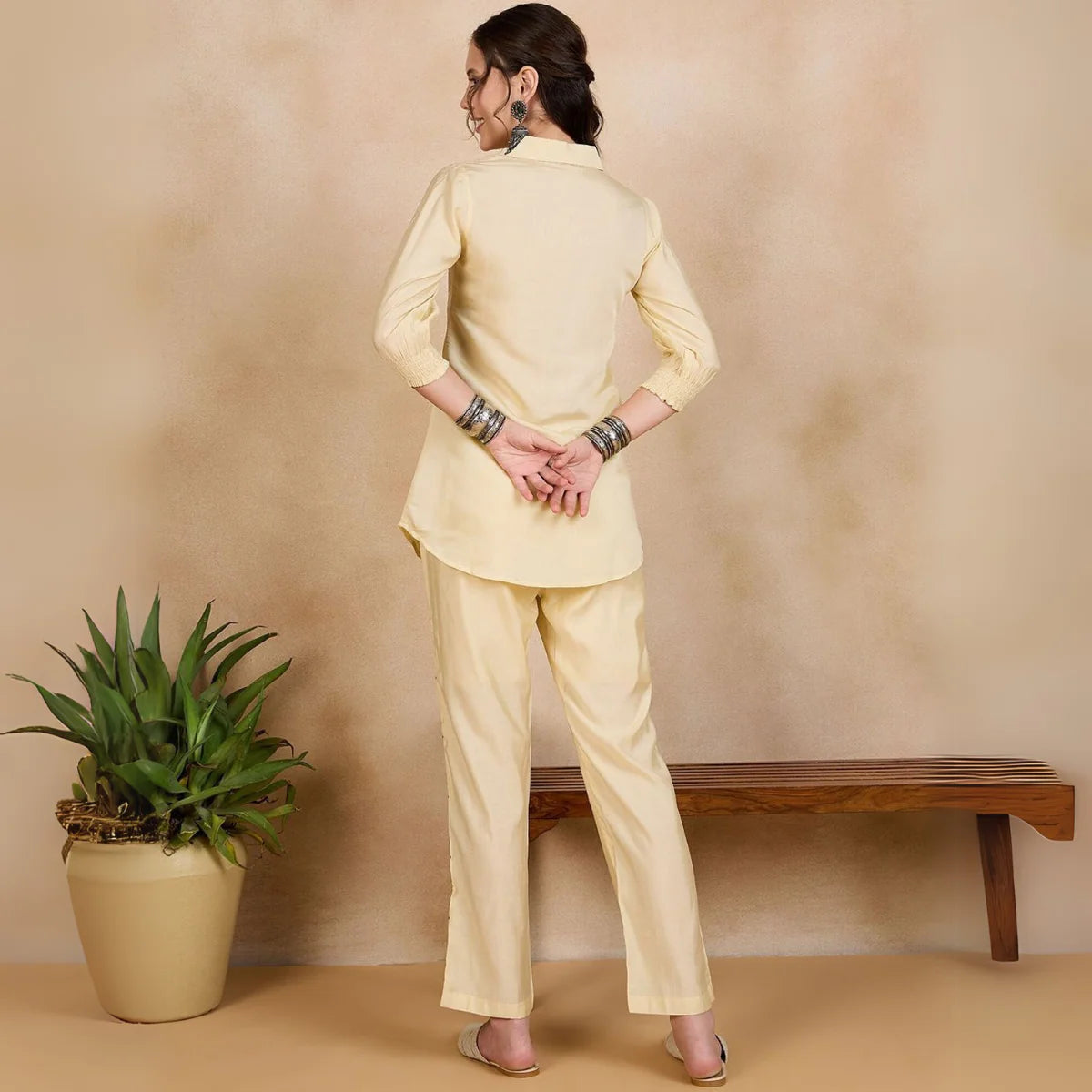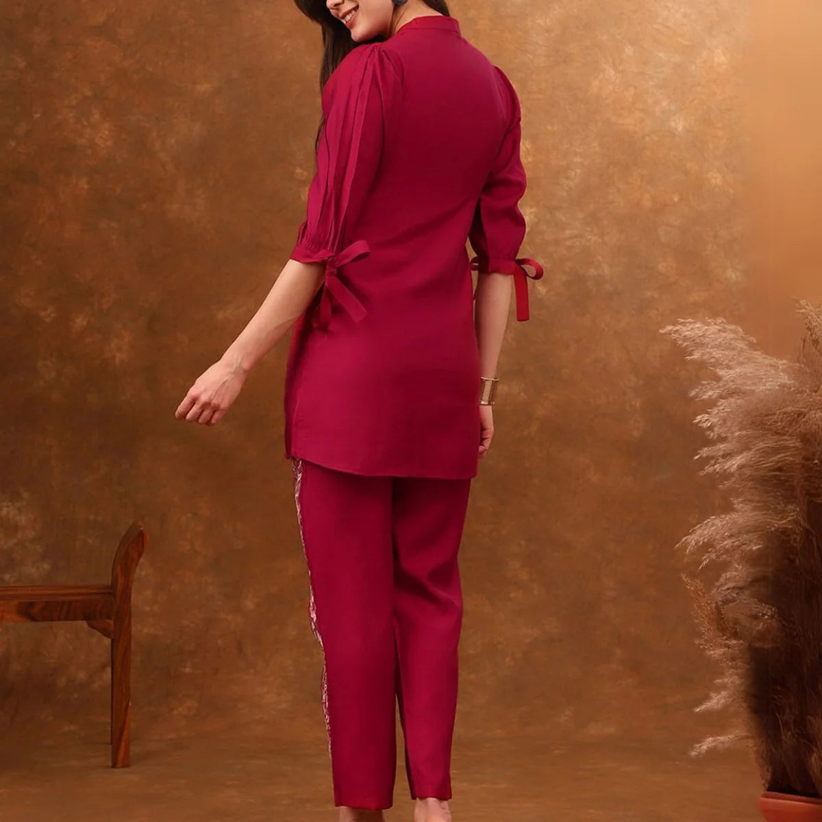 The 4 Co-ord Set Women Combo offers a versatile and stylish wardrobe upgrade for every occasion. This collection includes an elegant ethnic co-ord set, perfect for festive celebrations with its intricate prints and rich fabrics like silk or cotton in vibrant hues such as maroon or emerald green.