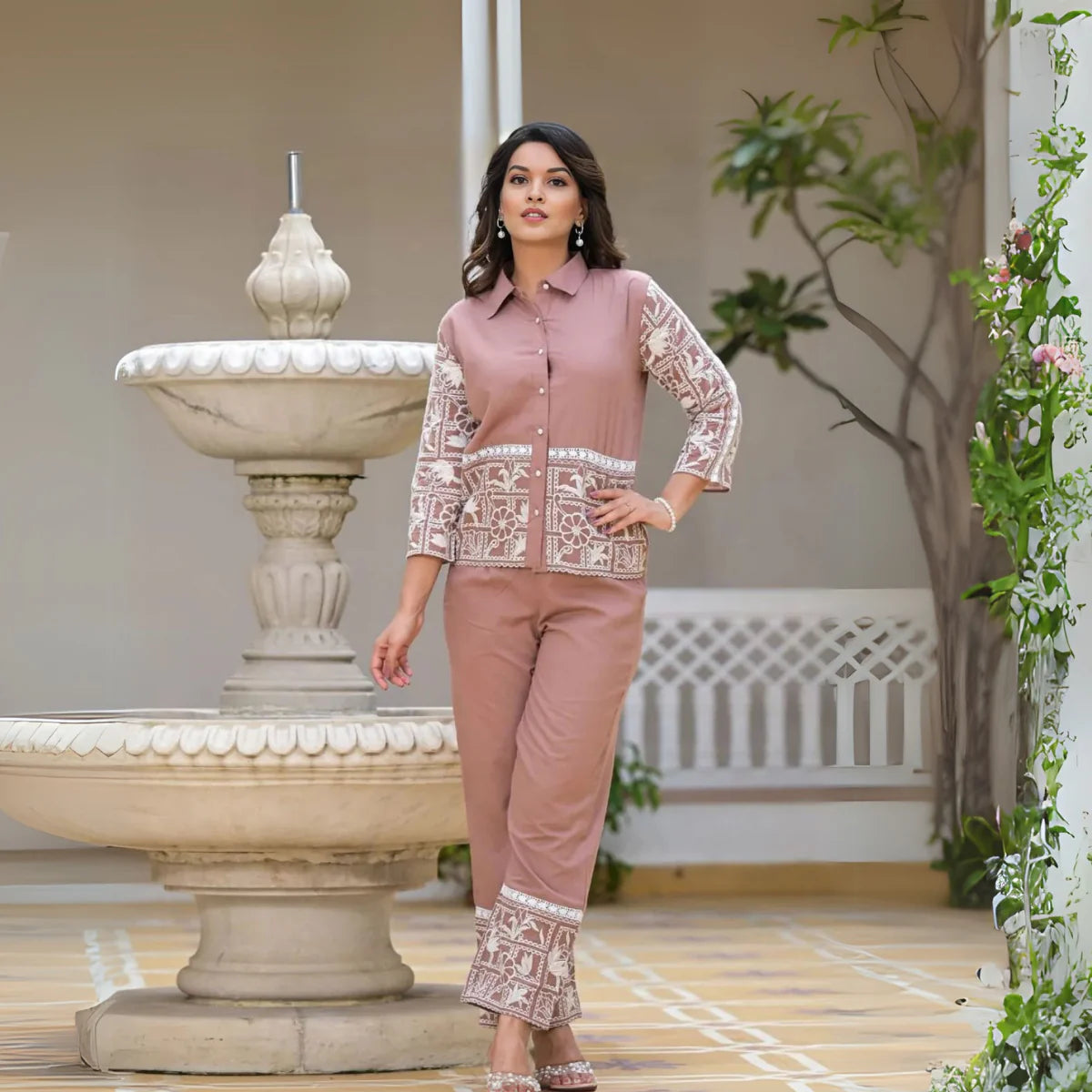 The casual cotton co-ord set is ideal for relaxed outings, featuring breathable fabrics and minimalist designs like stripes or solid colors, ensuring comfort and effortless style.