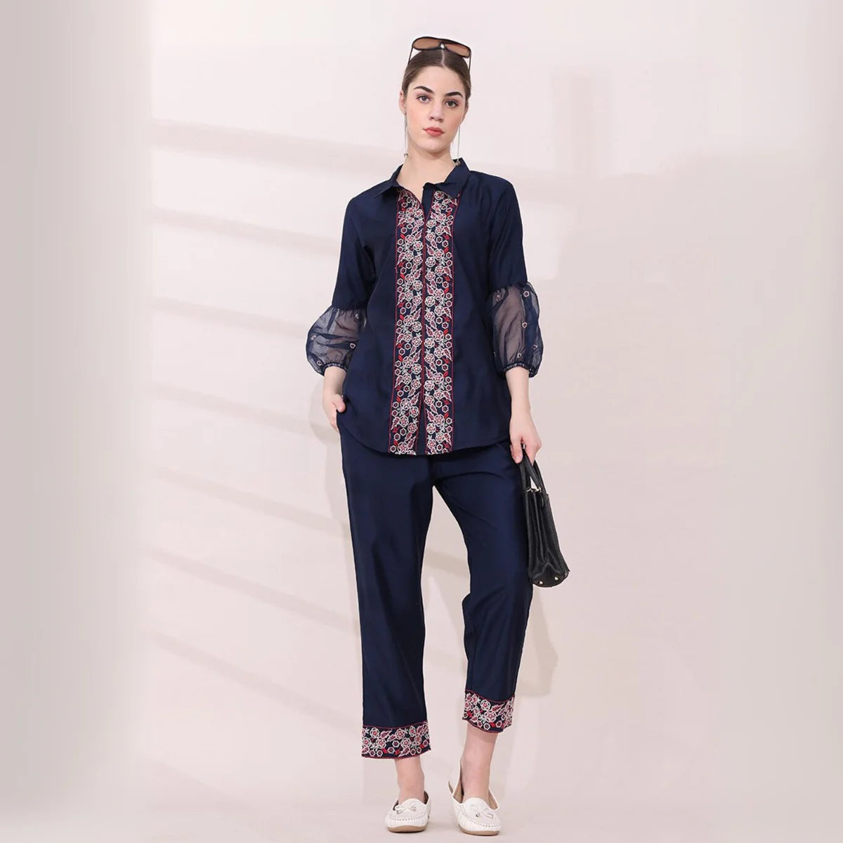 For a polished professional look, the chic formal co-ord set combines structured blazers and tailored trousers in neutral tones, seamlessly transitioning from office meetings to evening events.