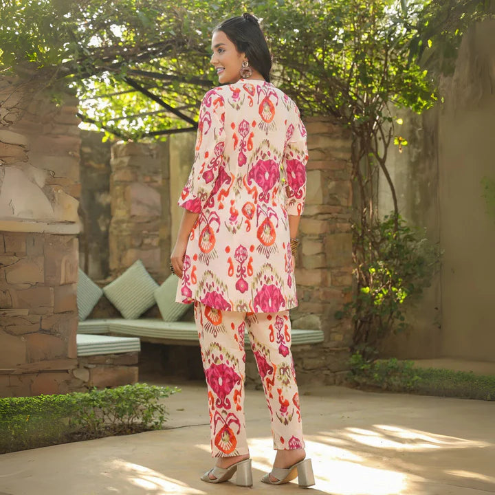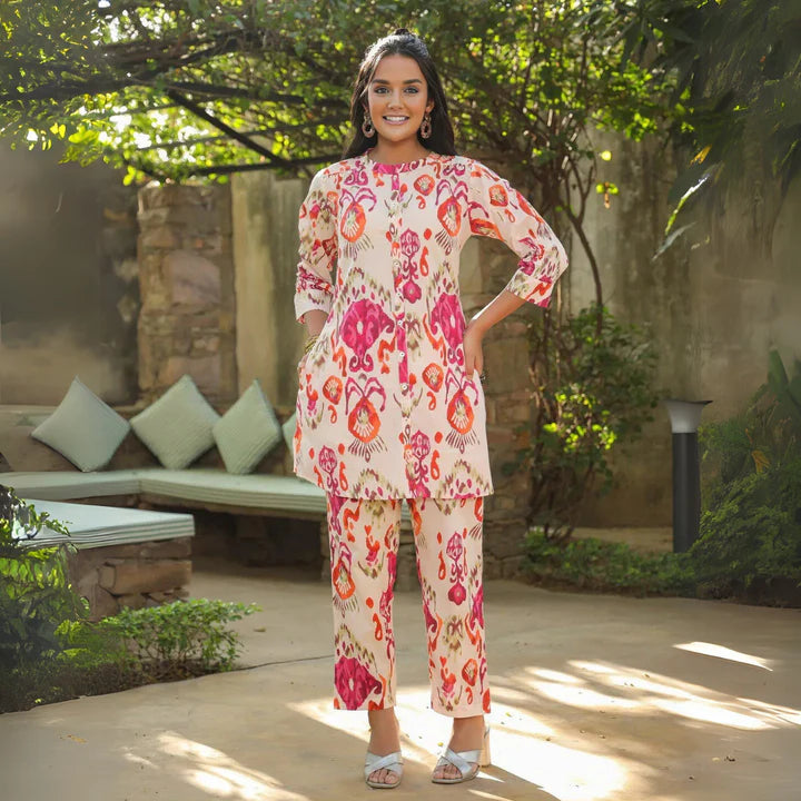 The casual cotton co-ord set is ideal for relaxed outings, featuring breathable fabrics and minimalist designs like stripes or solid colors, ensuring comfort and effortless style.