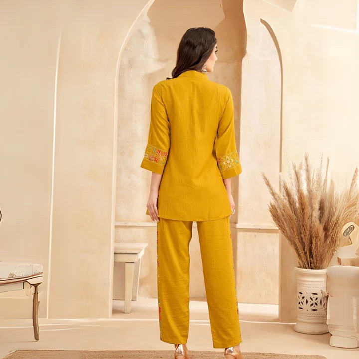 For a polished professional look, the chic formal co-ord set combines structured blazers and tailored trousers in neutral tones, seamlessly transitioning from office meetings to evening events.